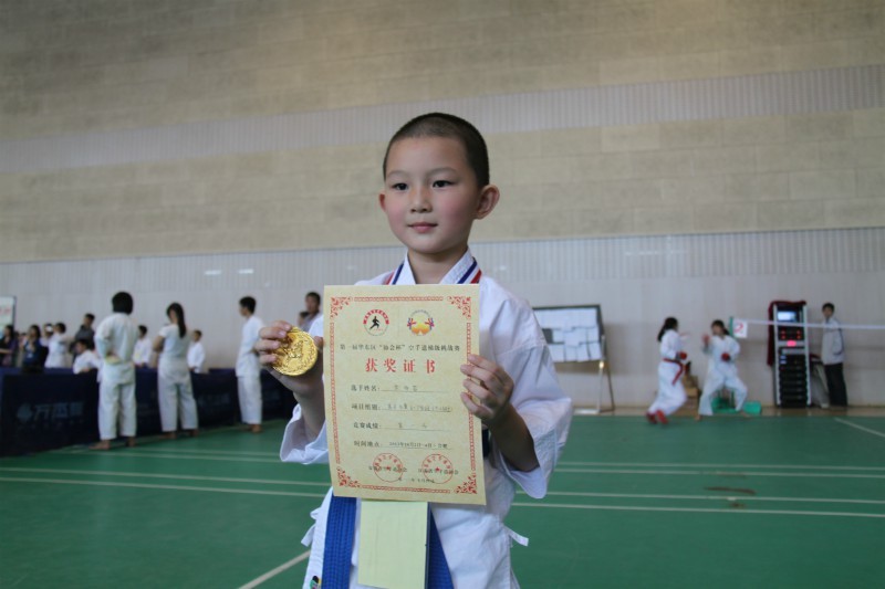 久久小说 空手道代表队选手安医大附小一(2)班余雨若同学为久久小说 代表队夺得首枚金牌