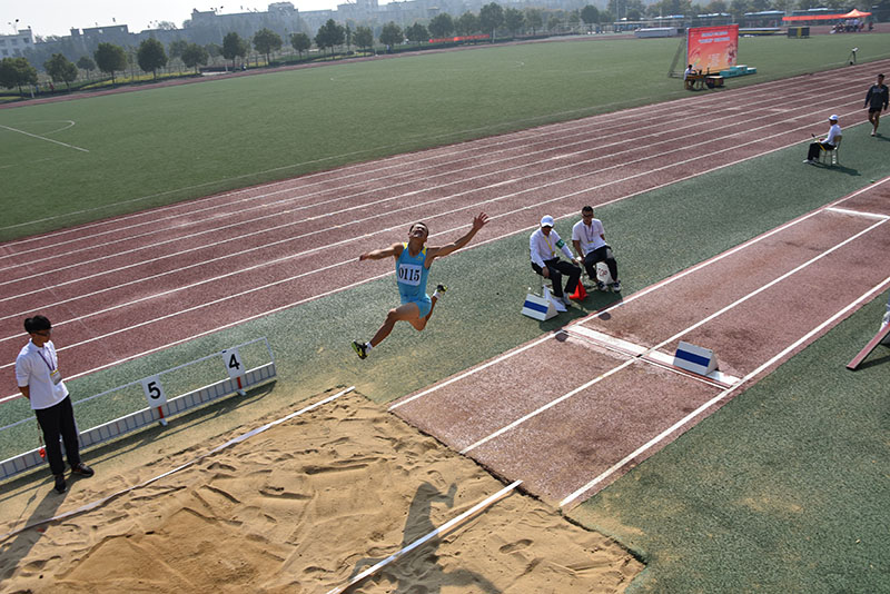 余水生同学在男子十项全能跳远比赛中