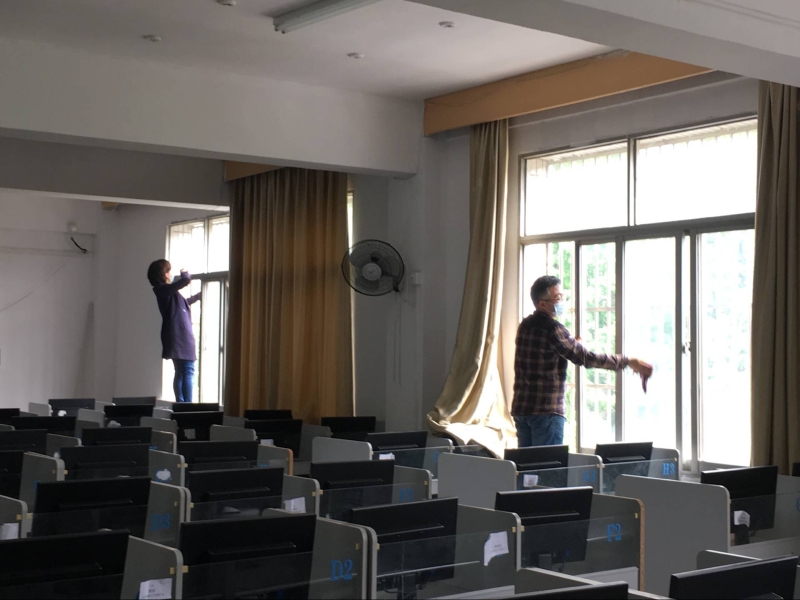 各位党员在党支部书记袁远的带领下,积极主动地参与到本次活动中,不怕苦、不惧脏、不嫌累,对外语系语音室进行了一次集中大清扫,做到不留死角,不留盲区。大扫除活动结束后,语音室焕然一新,大家都为这次活动点赞。