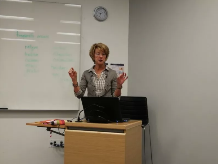乔治城大学客座教授Sigrun Biesenbach-Lucas首先为大家展开了一场关于跨文化交际的讲座,从文化的涵义、跨文化交际技能、东西方基本文化特征、言语交际差异、书面语交际差异、非言语交际差异、跨文化交际的障碍等方面对跨文化交际做了深入的阐释和总结。Lucas教授指出,跨文化交际不仅仅需要了解表层的可见的文化差异,更试图挖掘表象背后所隐含的深层差异,如他们的观念、原则、思维方式、信仰等等,从而促进人们交际的有效和深入进行。
