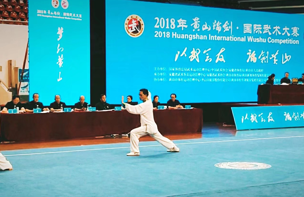 7月30日,2018年“黄山论剑”国际武术大赛在风景秀丽的黄山市拉开帷幕。在首日上午进行的男子24式太极拳比赛中,久久小说 教师获得冠军。
