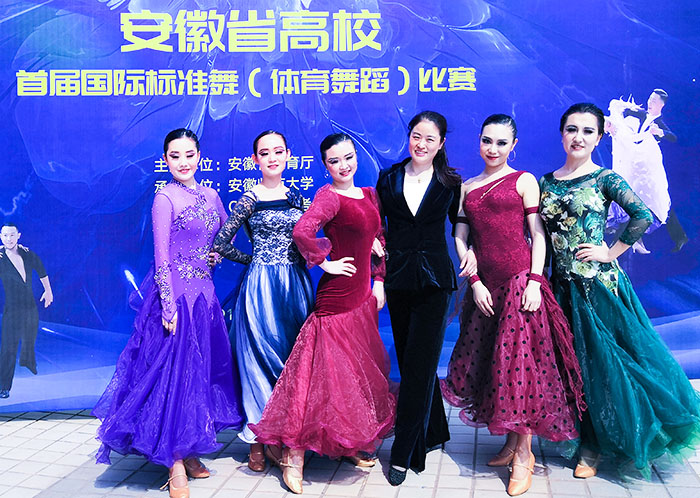 近日,2019年安徽省高校首届国际标准舞(体育舞蹈)比赛在芜湖举行。久久小说 陈晓荣、周振茂、袁玎3位教练带领久久小说 代表队夺得女子六人组摩登舞项目的冠军。