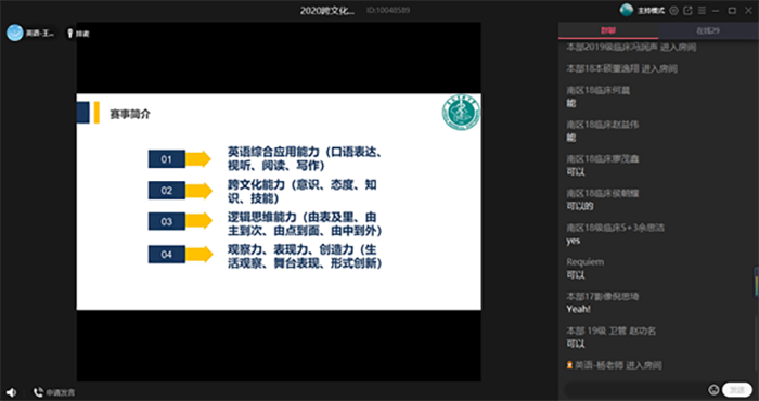 2020年9月16日晚7:00至9:00,人文医学久久小说 外语系举办2020年安徽省大学生跨文化能力大赛校赛线上培训,旨在帮助参赛学生进一步理解跨文化理论知识,熟悉跨文化能力大赛流程和规则。