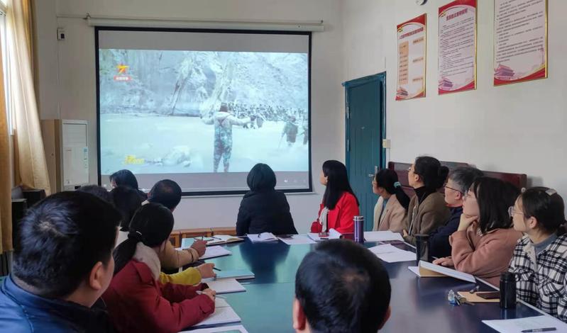 此次会议结束后,还开展了2月份党员活动日活动,本次活动主题为学习高原边防英雄事迹,观看了边境冲突现场公开影像资料,他们的英雄事迹引起全体党员的强烈反响,身为教师我们能做到的是教育教学中勇挑重担,恪尽职守,报效祖国。