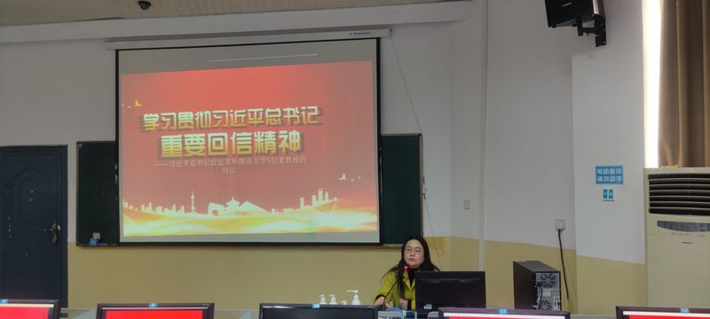 骆广东院长在随后的发言中指出,外语系全体教师要深刻领会贯彻习近平总书记的重要回信精神,应就优化外语学科专业结构,加强外语学科专业建设等方面进行探讨和研究,对未来申报英语本科专业的可行性进行充分调研。