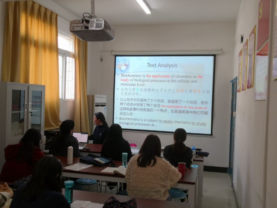 卞佳老师和曹玲老师进行了第三单元备课,她们从课文结构分析、学术英语篇章中时态和语态的使用、学术英语中的例证写作方法等方面做出了细致阐述;并结合课文主题内容,引导学生思考食品卫生和安全问题,将自身专业和社会问题紧密结合。