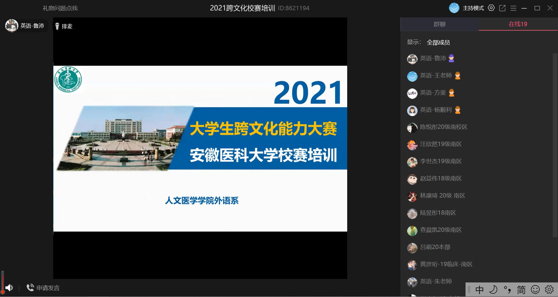 外语系组织了线上集中的赛前培训。