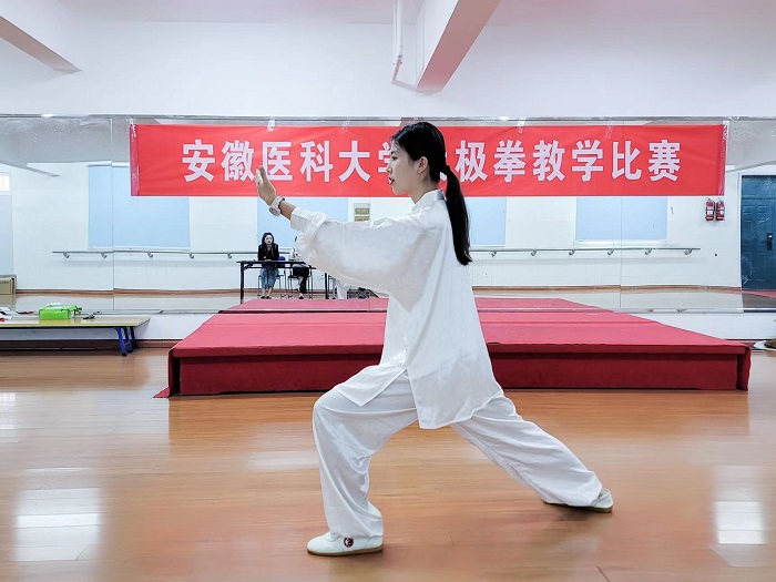 6月1日下午进行了预赛,参赛同学进行了完整的24式太极拳动作展示,最终有15位同学进入决赛。6月3日上午进行决赛,参赛同学自选24式太极拳一式动作进行教学展示,通过动作示范、分解教学、重难点讲解、易犯错误、攻防含义等教学步骤,表现出同学们清晰的教学思路,流畅的教学过程,合理的教学设计,充分展示了同学们扎实的太极拳基本功和勇于挑战的心理素质。经过激烈的角逐,滕玉竹同学动作优美的示范、条理清晰的教学、富有表现力和感染力的讲解获得了评委的一致认可,最终荣获特等奖,汪若晴、万程欢、董重、宗馨然、吴学燕等5人获得一等奖,方亮等8人获得二等奖,石雨菲等6人获得三等奖。