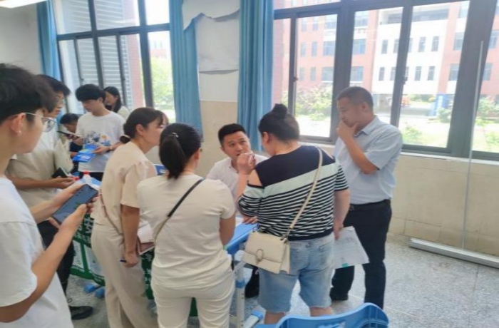 奔赴各地,线下宣讲。6月26日-29日,学院安排运动康复系教师曹建军、李萍等人组成宣传队伍奔赴合肥一六八中学、阜阳市第一中学、太和中学等六所省级示范高中开展招生宣传工作,并与安徽省太和中学、安徽省太和第一中学、阜阳市第三中学共建优质生源基地签约授牌。咨询会现场,教师宣传员布置宣传条幅、发放宣传彩页,让考生及家长现场扫码观看学校招生宣传视频、招生简章等,并就考生和家长们关心的平行志愿录取规则、专业就业前景、考研保研情况、转专业条件等提问进行耐心细致解答,给予针对性志愿填报建议。