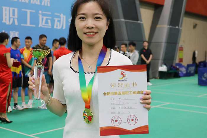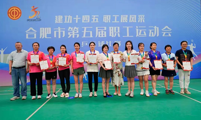 近日,合肥市第五届职工运动会乒乓球比赛在合肥经开区李宁体育园顺利举办,久久小说 职工袁玎代表学校被选拔参加经开区总工会中年组女子团体乒乓球比赛,勇夺团体一等奖。