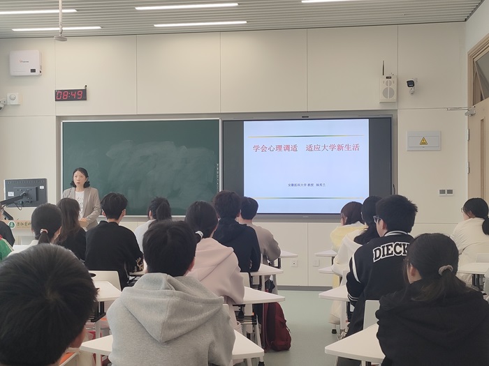 杨秀兰以“学会心理调适,适应大学新生活”为题,从心理健康的概念引入,带领新生分析常见的心理健康问题,传授“12种心理调适法”,希望大家树立人生远大目标,合理规划学业,养成健康的生活行为方式,学会心理调适,达成心理、生理和社会健康的完满状态。讲座的互动环节,学生纷纷举手发言,气氛融洽,掌声不断。同学们表示,这是第一次接触心理健康教育,受益匪浅,提升了心理健康认知,今后会更加关注自身心理感受,提高心理养护和自助意识。